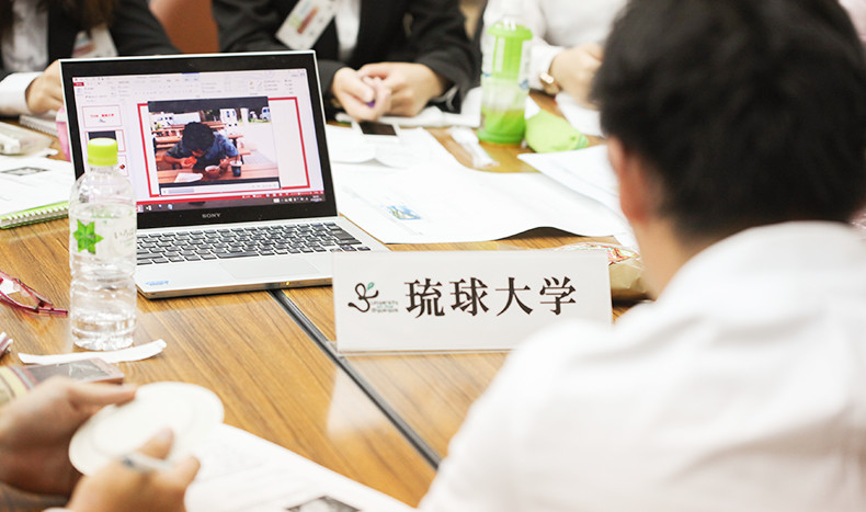 販促会議初日に合わせて、サンプルムービーを用意してきた琉大メンバー。ヤル気がみなぎっています。伝えたい要点をほそく補足説明しながら、講師陣に動画をプレビュー。