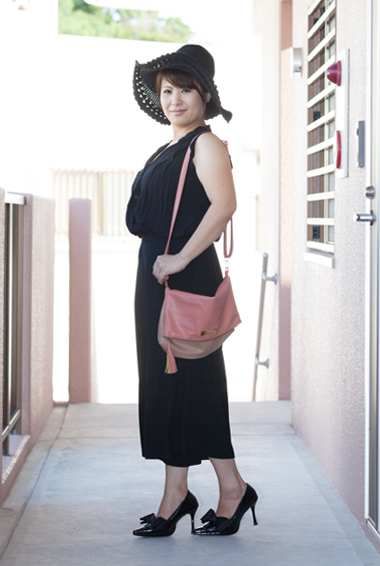 オールブラックを優しくオシャレに、けどオトナの雰囲気は壊さないカラーコンビネーションなの♪