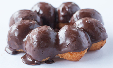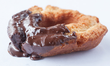 ドーナツ専用のフライオイルで揚げた生地を、口溶けの良いなめらかなチョコでコーティング。程良い甘さのチョコとモチモチ食感の生地が特徴です。