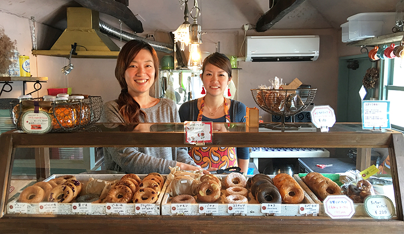 豆腐職人の夫をもつ店主が作る焼きドーナツのお店。豆乳やおからに全粒粉(九州産)を配合し、店内で毎日ドーナツを焼いている。国産大豆を使用しているので、キメが細かく、温かい時はフワフワ、冷めてもしっとりとした食感が特徴。冷凍保存もOKなので、まとめ買いしていくお客さんも多い。8~12種類が常時ラインアップされ、新商品も続々登場するのでいつ行っても新しいおいしさと出会えるのもうれしい。プレーン130円、うちなー黒糖ドーナツ160円、抹茶170円、アップルシナモン(冬期限定)180円
