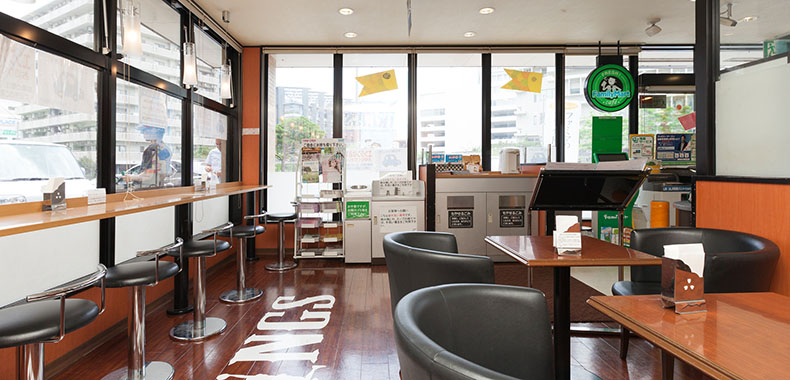 ユニークな企画のラッピング実施店舗として知られる、おもろまち二丁目店はソファ席のあるイートインコーナーをご用意。現在はキングスマートとしてOPEN中なので、デコレーションも楽しんで。