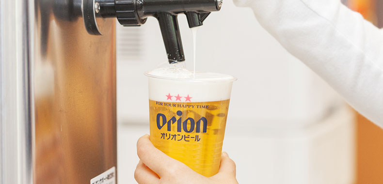 夏といばビールが恋しい季節!リースビル店ではオリオンの生ビール( 1杯400円。税込)を販売中!店内でつまみも購入できるので、マイカー通勤でなければお仕事帰りに1杯!や、近隣で夜のお約束がある際にはウェイティングバーとして1杯楽しみながら利用するのはいかが?