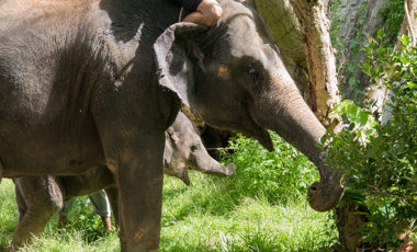 取材中にちょうど象の親子の散歩に出くわしたのですが、日本中、世界中の動物園を見て回っているという常連のお客さんがいらっしゃって、「象の親子がこうして園内を自由に散歩して、しかも一般人が手を触れる位置まで近づくことができるなんてありえないよ。東南アジアでは結構あるけど、日本ではとても珍しい」と教えてくれました。