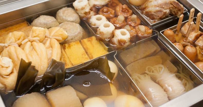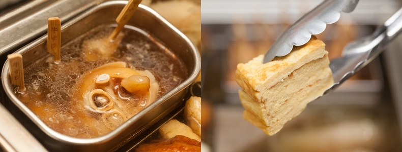一年を通してレジ横で販売しているおでん(店舗限定)。沖縄ファミリーマートでは29年程前から販売を開始したのですが、風土にあうよう、ダシはカツオがベースになっています。そしてネタにも注目!