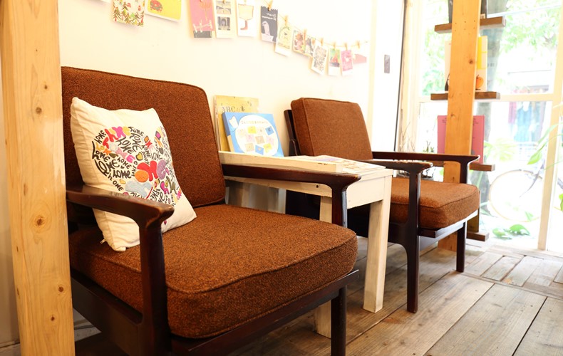 その他にも、人に感謝すること・人を信じることの大切さや、諦めなければいつか夢は叶うというメッセージが隠された絵本はまだまだたくさんあります。「気になったものはぜひ手に取ってみてくださいね」と夢子さん。“ゆったりと選べるように”と、店内には座り心地の良い椅子が設置されています。