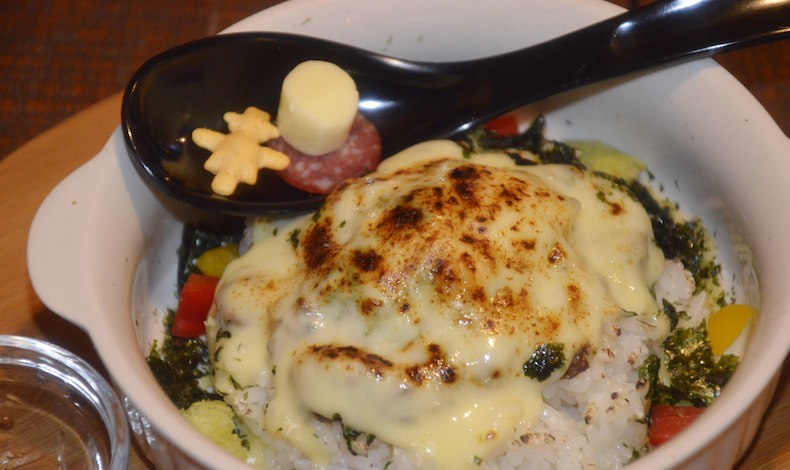 そして残るは「焼きチーズまぜゴハン」。これがまたオイシイ!台湾まぜそばなどで最後に追い飯を入れますが、じゃじゃ麺と同じ肉味噌や共通の具材なので、その感覚と似ています。こちらも良く混ぜてから召し上がれ。
