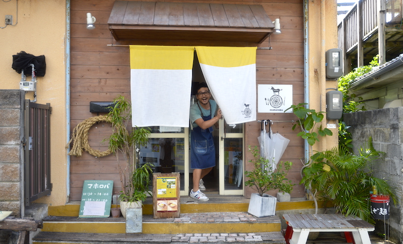 ちょっと道を曲がっただけで国際通りの喧騒が嘘みたい、人の暮らしの息吹が感じられる小道に、自然な佇まいでmahorobaさんはありました。