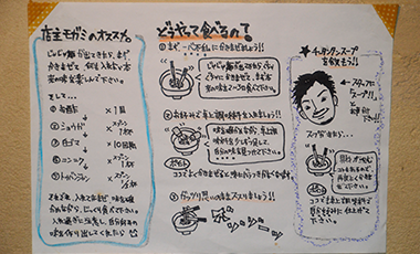ゆいレール美栄橋駅が見える、遊び心満載の山小屋へ来たようなモガメンさんの店内では、ホッコリ笑顔のオーナー茂上さんが迎えてくれました。しかしホッコリ感とは裏腹に、穏やかな口調ながら手際よく、取材にこたえてくれましたよ。