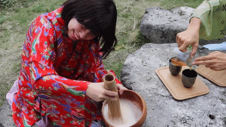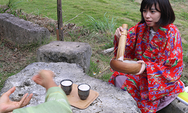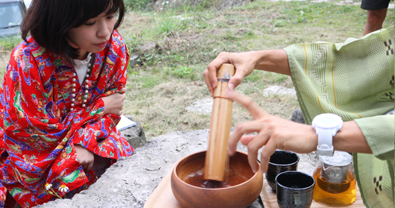 ナチュラ田中:「諸説ありますが、基本的にお祝い事の時などに飲まれてたみたいです。あとは戦に行く前など、友人との再会を願って、ですね。ぶくぶく茶の泡をつけて笑いあってたそうですよ」