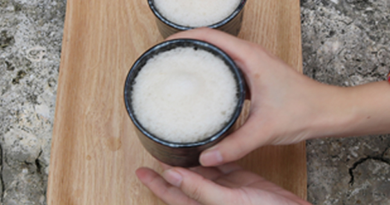 ナチュラ田中:「あと、ぶくぶく茶に使う水は硬水が絶対です。硬度が高いほどよく泡立ちます。昔は沖縄県南城市玉城にある『垣花樋川(かきのはなひーじゃー)』というところから湧き水を汲んで使っていたと言いますが、年々硬度が下がってきていますね。」