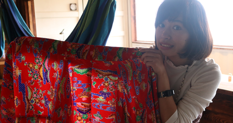 田中:「あ!楽しみだったんです!わー!紅型の着物可愛い〜」