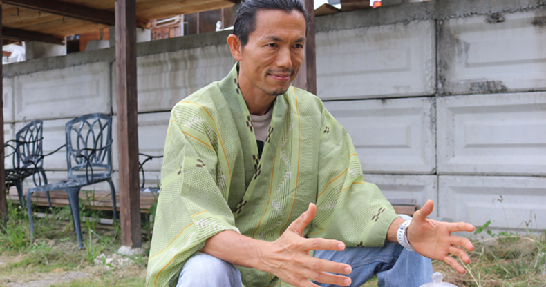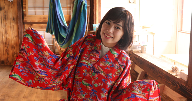 ナチュラ田中:「はい、じゃあまずは紅型柄の着物を着てもらいましょうか」