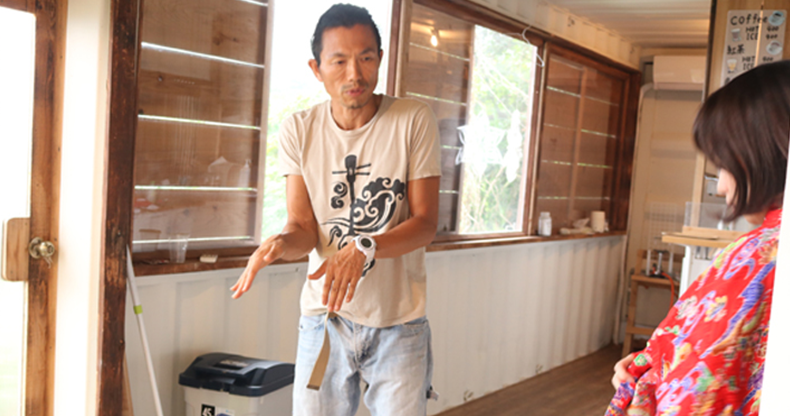 ナチュラ田中:「南城市民大学の同期生なんですよ。『南部島人サークルNエコツーリズム』と言うサークルのメンバーでもあってよく一緒に活動してます」