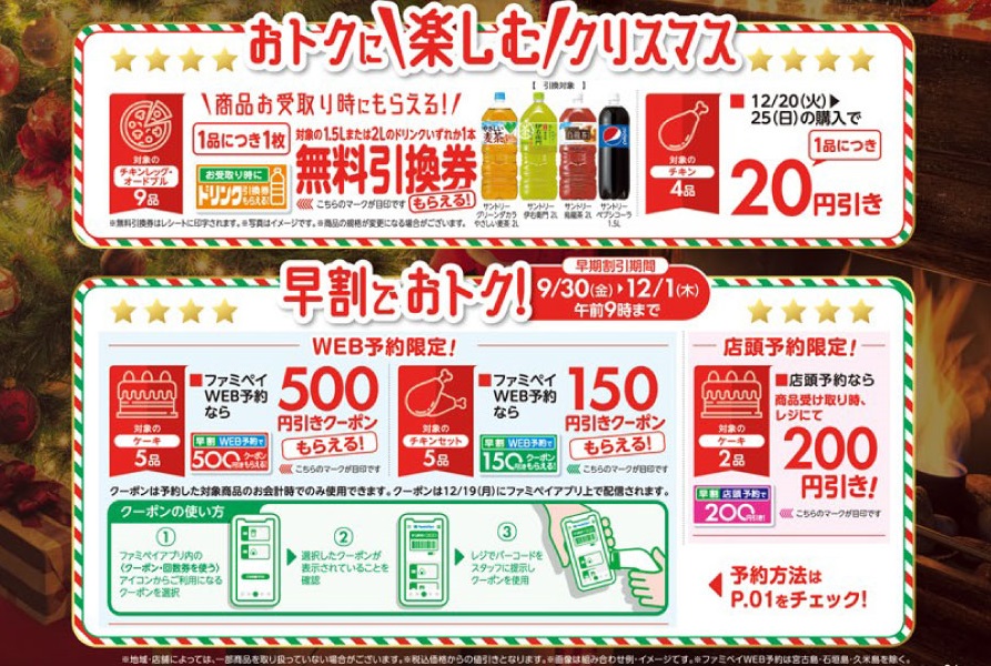 ※クーポンは予約した対象商品のお会計時でのみ使用できます。クーポンは12/19(月)にファミペイアプリ上で配信されます。