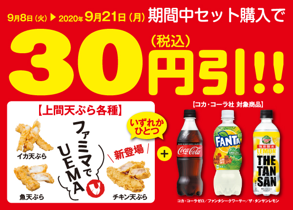 コカ・コーラ社対象商品+上間天ぷらセットで30円引き!※終了しました。 終了
