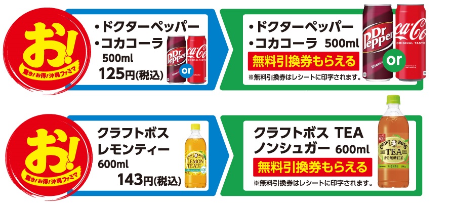 ⇒コカ・コーラ増量缶かドクターペッパー増量缶(いずれか1個との交換)無料引換券もらえる