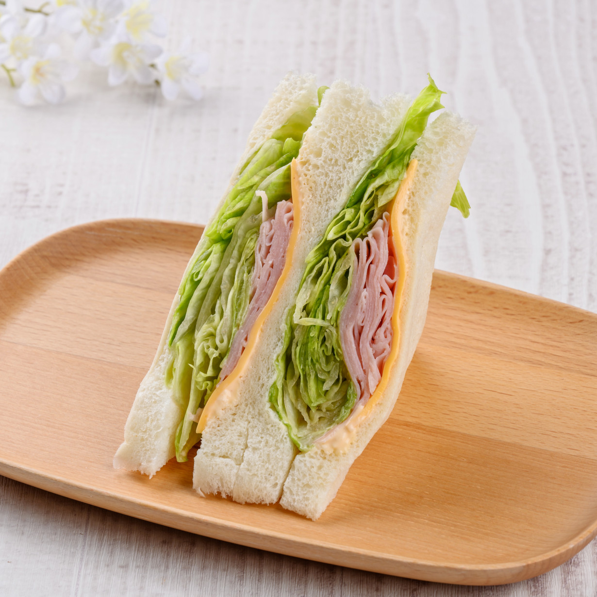 【内   容】糸満産の旬のレタスを使用したサンドイッチ。 シャキシャキ食感のレタスにハムとチーズを組合せ、オニオンフレンチソースで味付けしたレタスがメインのサンドイッチです。
