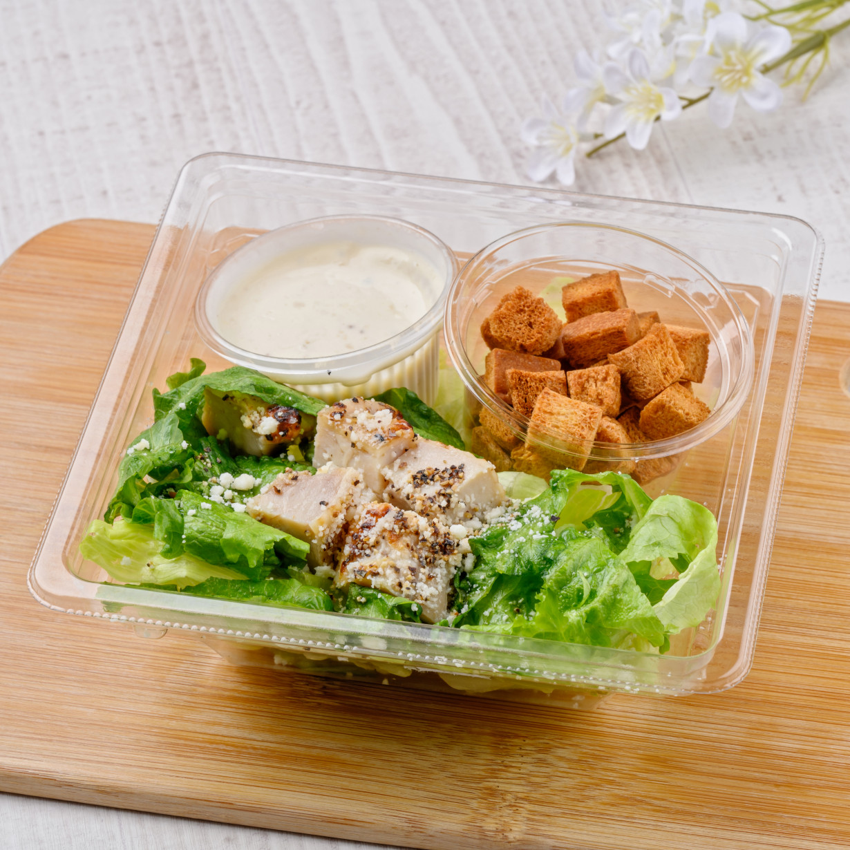 【内   容】糸満産レタスを使用したシーザーサラダ。にんにくを効かせたグリルチキン、粉チーズをトッピングしました。自社製クルトン・ドレッシング付。
