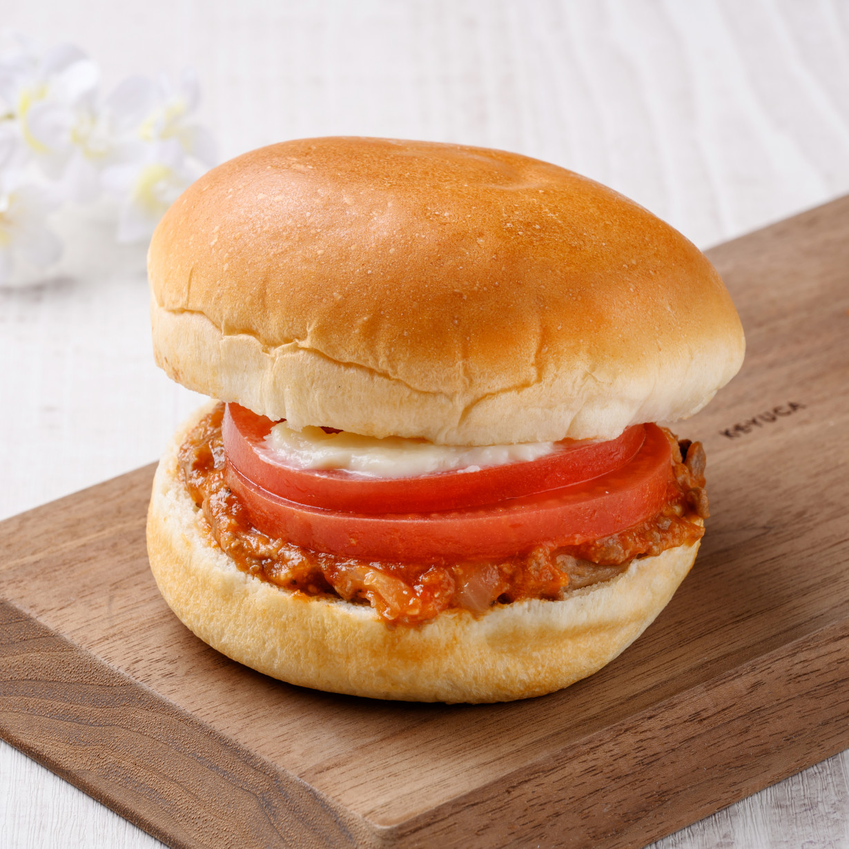 【内   容】旬の豊見城産ちゅらとまとを使用したバーガー。パティにミートソースとスライストマトを2枚、チーズソースを組合せました。