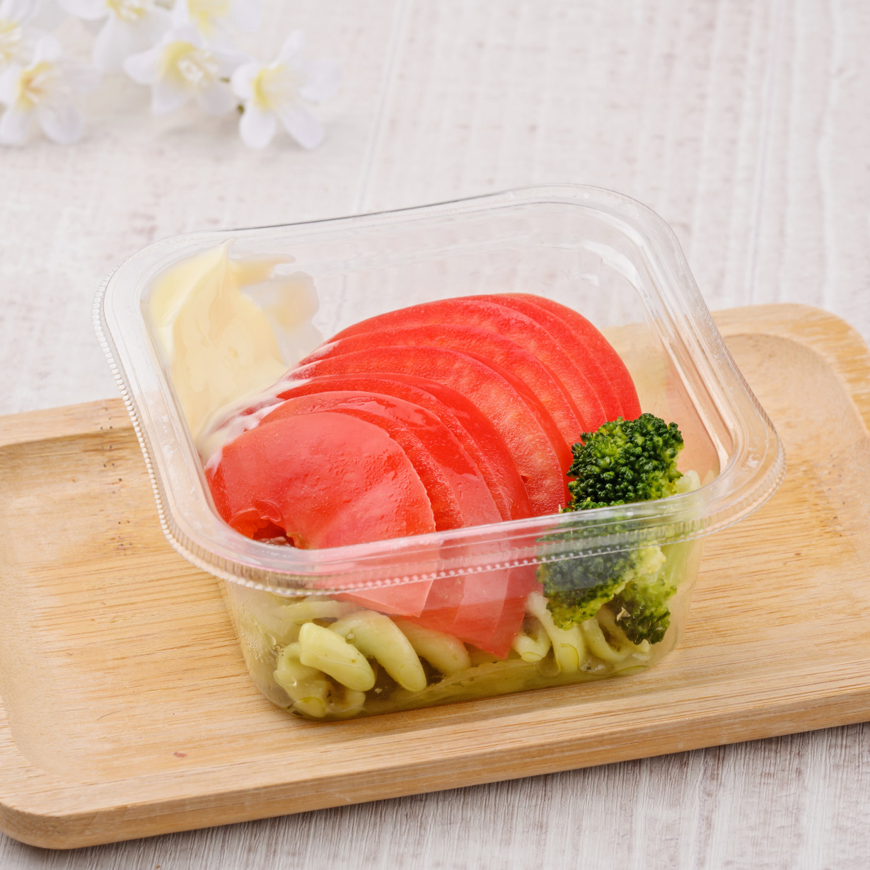 【内   容】旬の豊見城産ちゅらとまと使用。バジル風味の玉ねぎ入りマカロニサラダをベースにトッピング。トマト 1/2 個分。